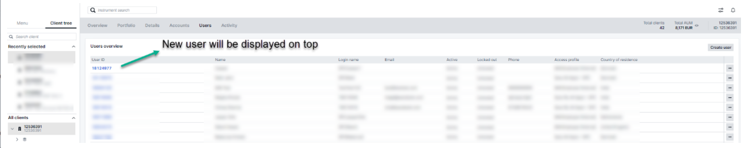 New user creation takes a few minutes, then appear in the 'User overview.'