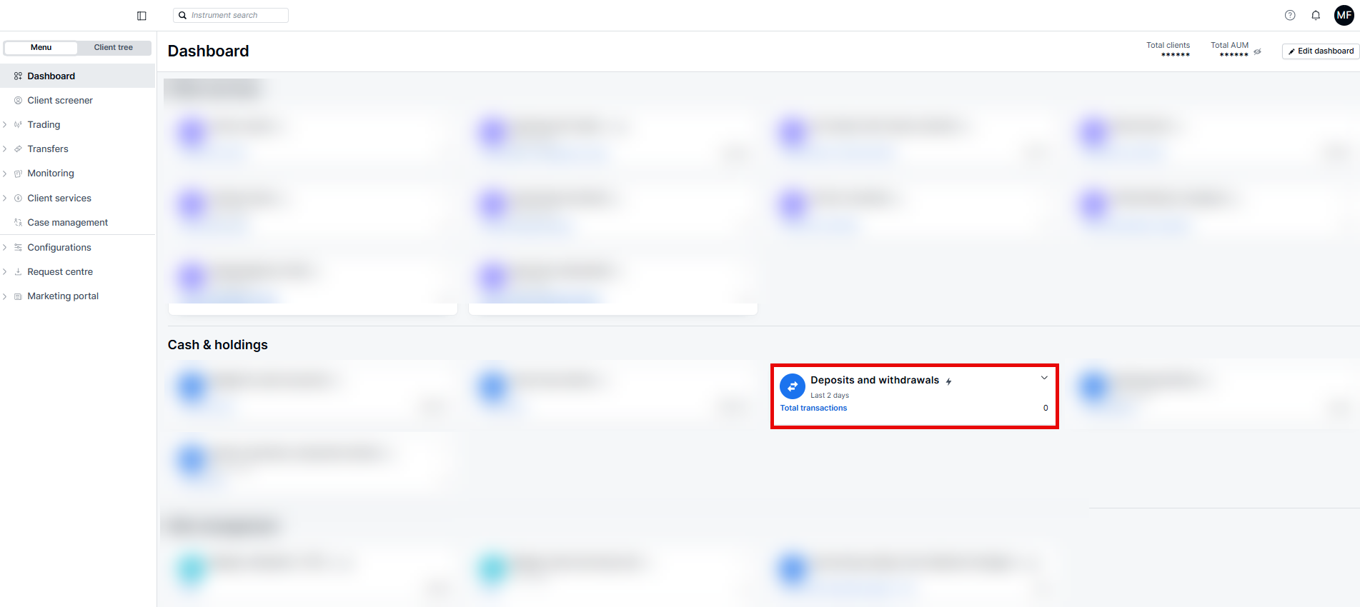 The Deposits & Withdrawals feature enables you to access and review both current and historical transaction data for client accounts.