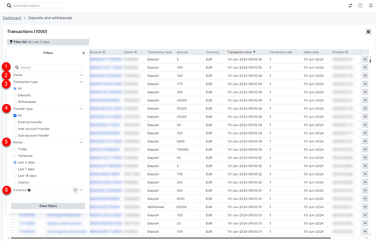 To help you delve deeper into deposits and withdrawals, a variety of filters are at your disposal:
