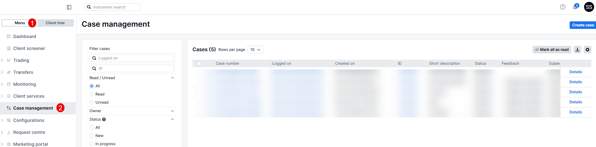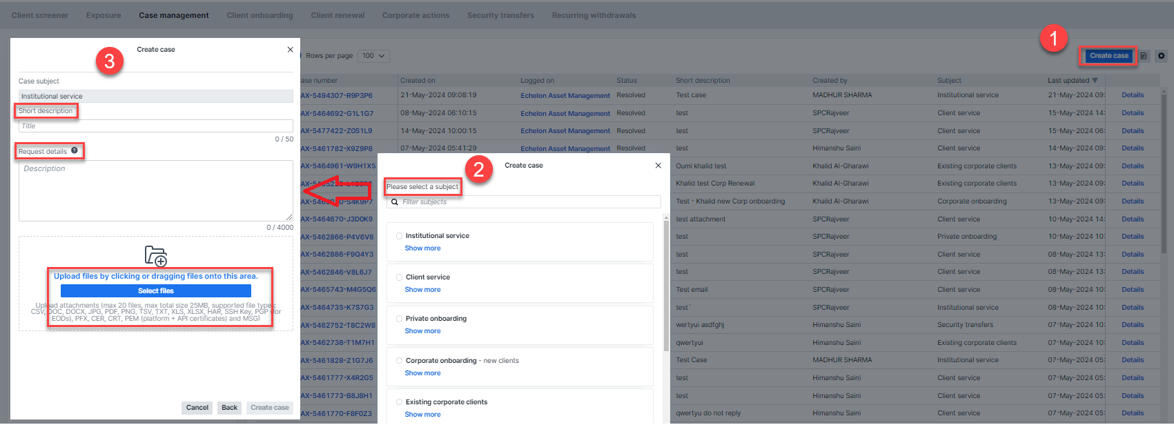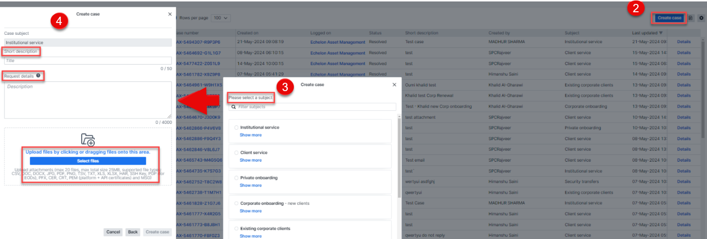 The Case Management module offers a secure and streamlined method for handling support inquiries and sharing documents.