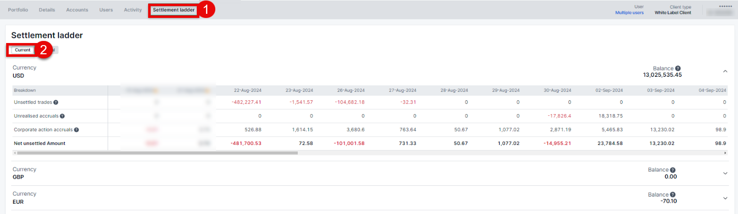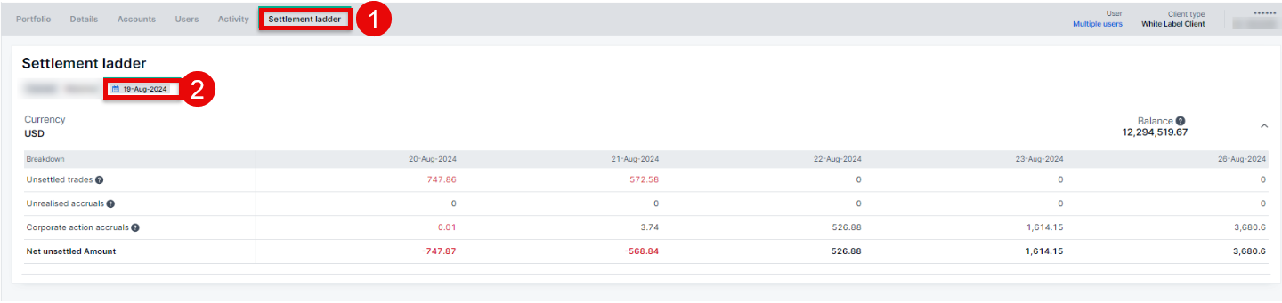 These views enable White Label Clients to effectively manage and monitor their cash balances and unsettled amounts.