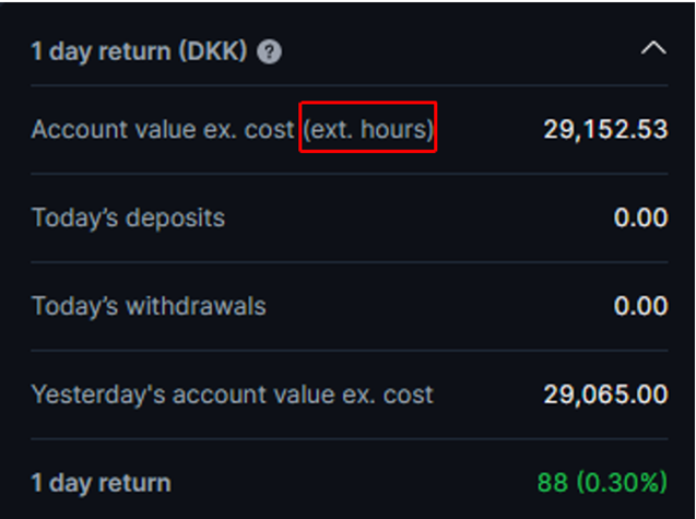 The 1 day return represents the change in your account's value since the previous day.