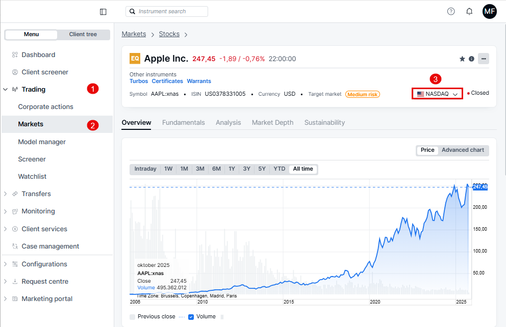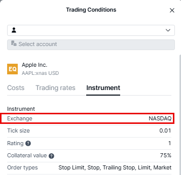 If you wish to receive live prices for a particular instrument and need to check which exchange you should subscribe to, you can view it on the platform.