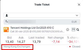 If you are trading Hong Kong products, please note that you will see the exchange is Hong Kong exchanges on both stocks and stock options.