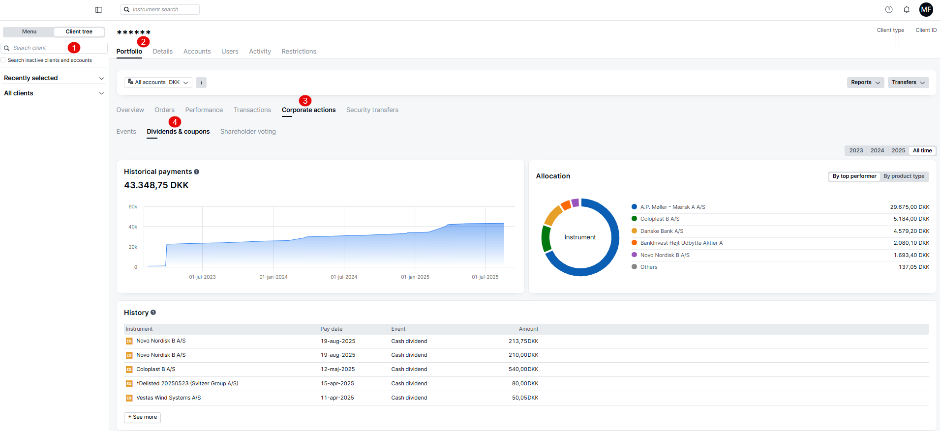 The Dividends and Coupons dashboard provides a consolidated view of your Corporate Actions income, including both Dividends and Coupon payments from bonds.
