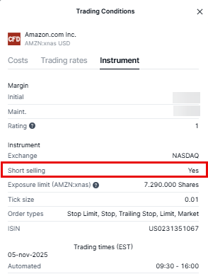 You can always see if a CFD is available for short selling in the Trading Conditions > Instrument.