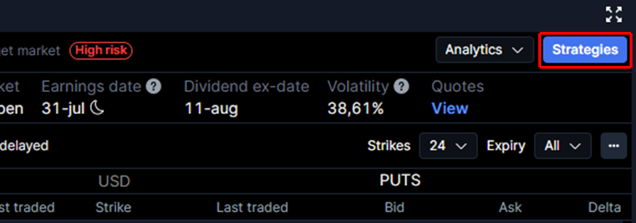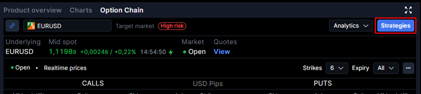 2. Click Strategies when you view an FX option in the option chain