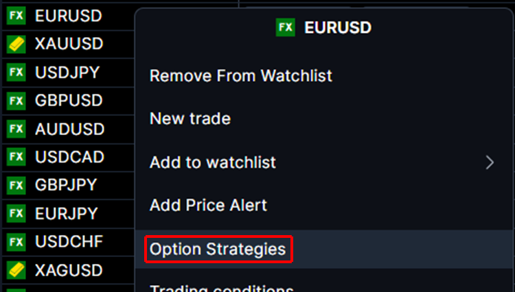 2. With a right click select Option Strategies.