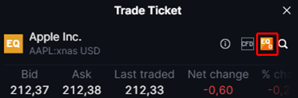 1. Double click on an instrument to open the trade ticket and switch to the option by clicking the options icon. You can also do this from the positions module or the screener.
