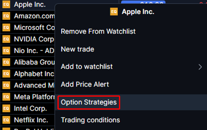 3. Right-click and select Option Strategies to launch the option strategies module.