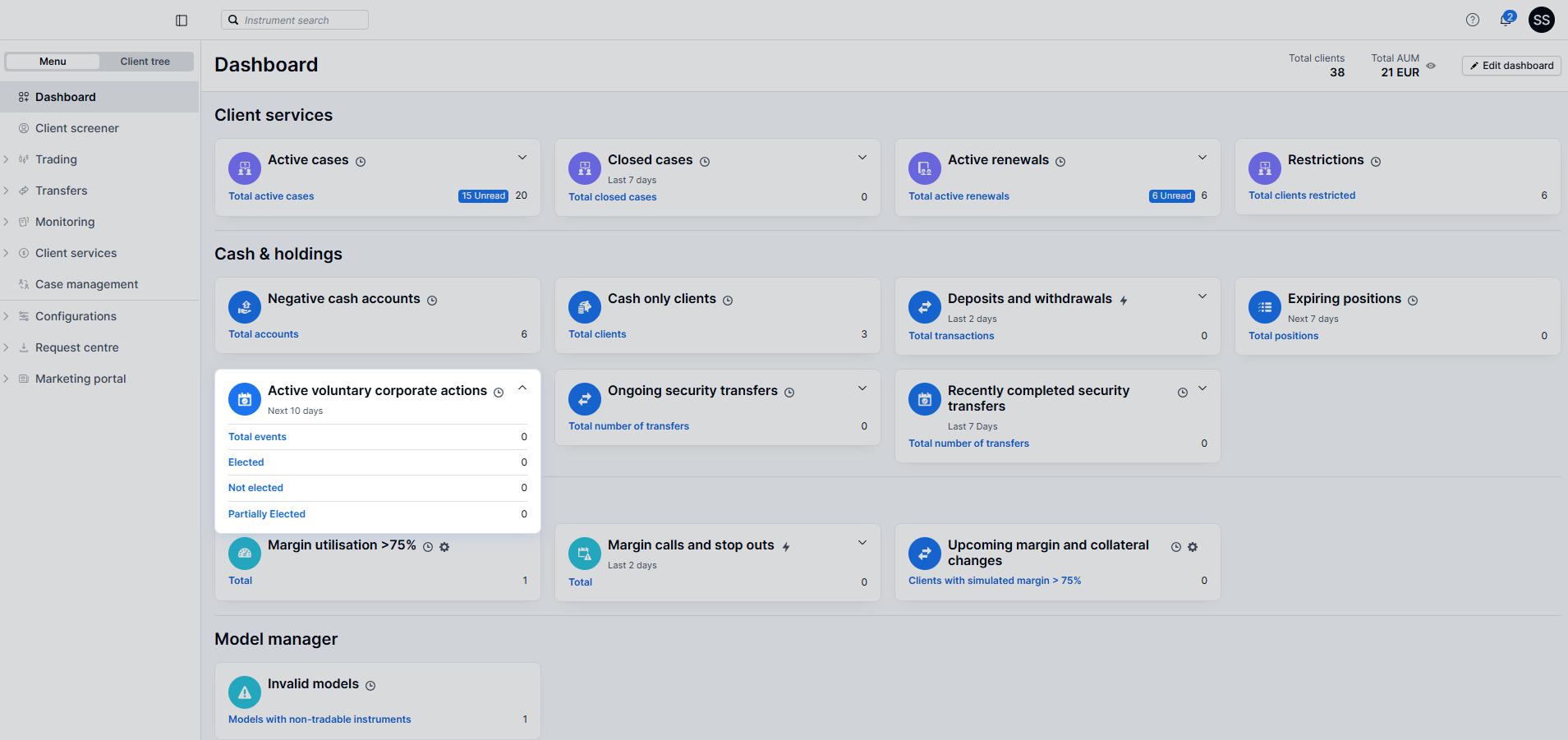 The Active voluntary corporate actions tile on the Dashboard makes it easy to stay on top of the corporate actions that require your attention.