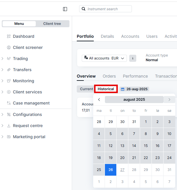 On the Portfolio page, it is now possible to view a client’s positions from previous dates.