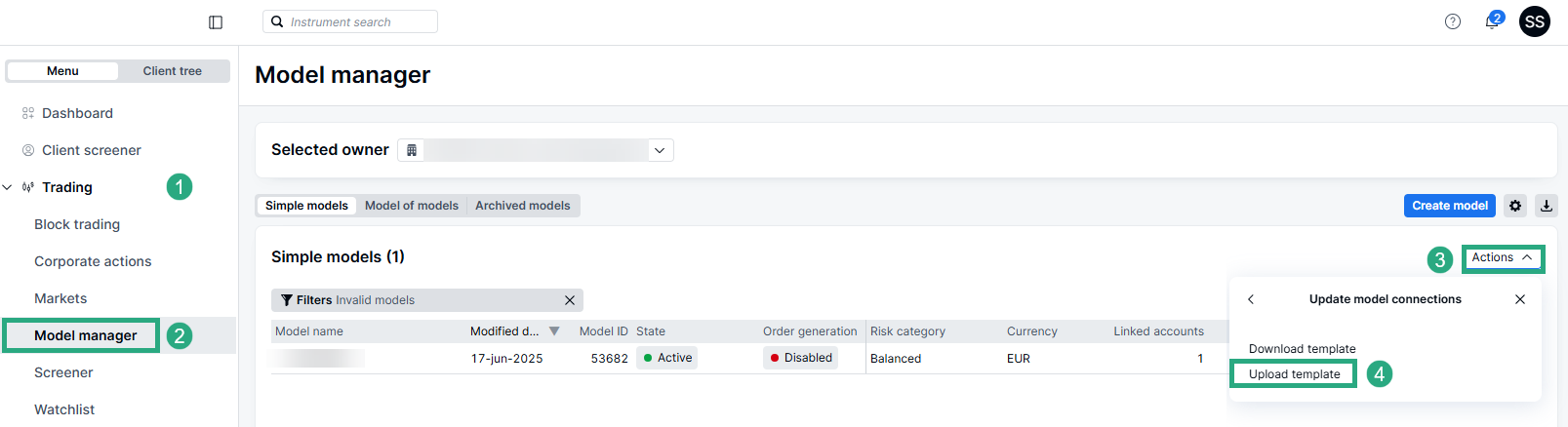 5. If you intend to make changes to your client-model links, please do it in single client view or use the bulk model connections upload feature available inside model manager.