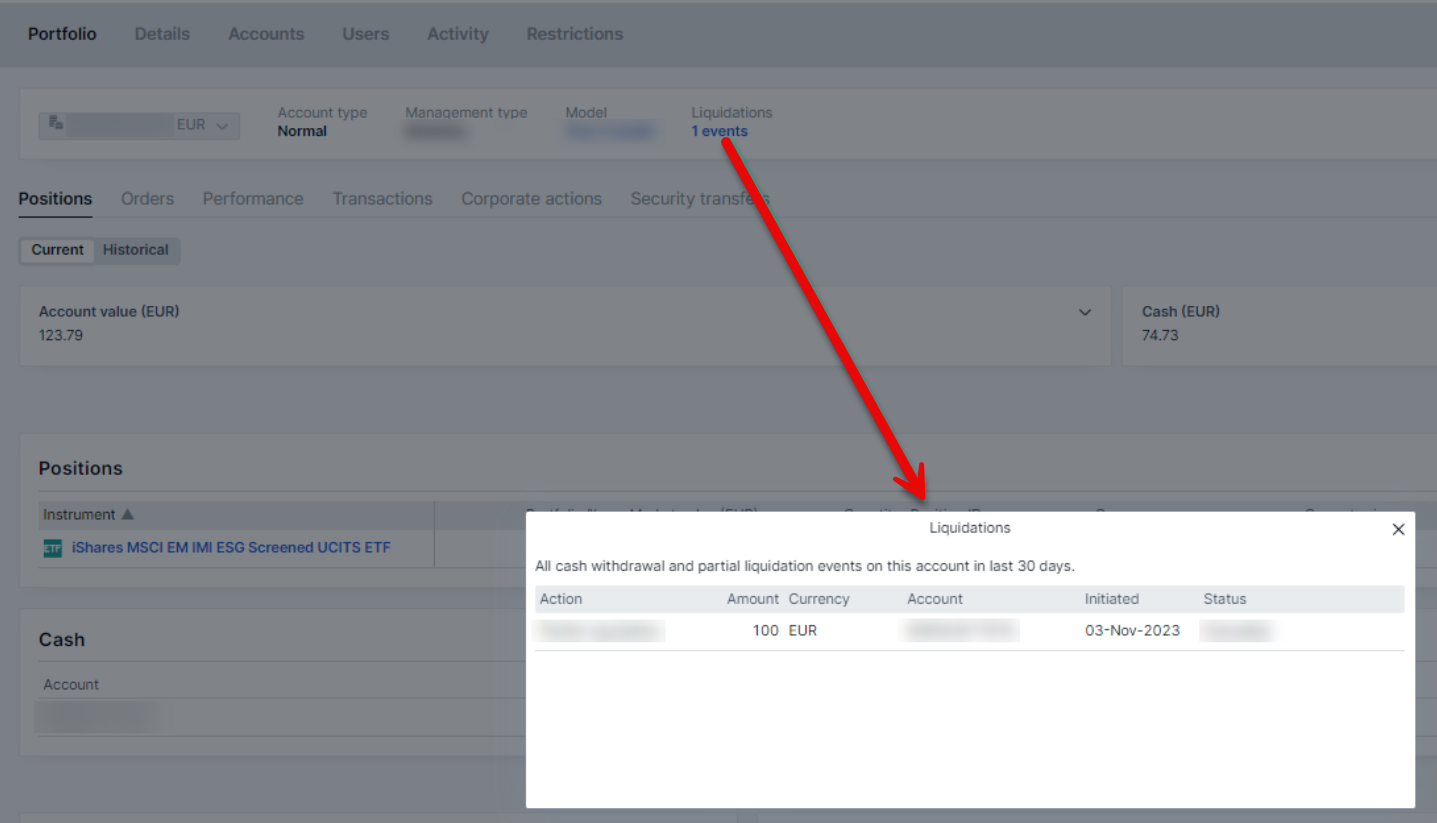 Progress of partial liquidation can be monitored using ‘Liquidations’ tab on single client view.