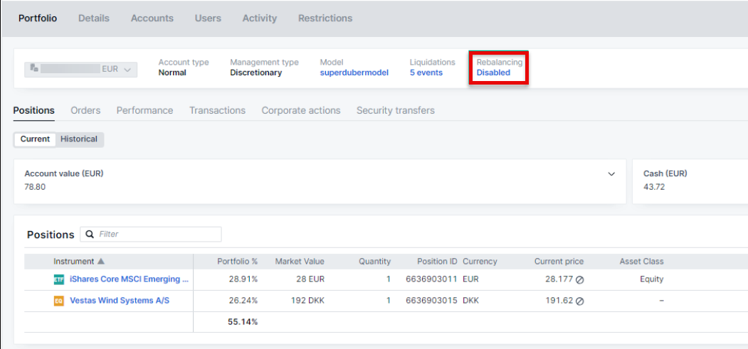 Once disabled, account must be manually enabled for rebalancing by clicking on ‘Disabled’ link.