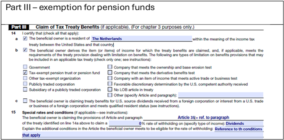 Pension Funds may be tax exempt on US dividends If the entity determines that it meets the requirements and are included in the register of the Dutch Central Bank: Register of pension funds | De Nederlandsche Bank
